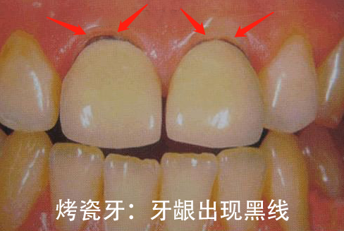 牙龈“黑线”问题:烤瓷牙金属内冠在口腔内氧化形成灰色氧化物,散在沉积到牙龈边缘,引起原因变灰,影响美观。而全瓷牙不需要金属内冠,所以没有这方面的问题。